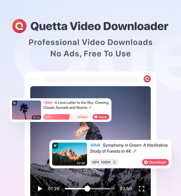 Quetta Video Downloader is the most powerful media extraction tool for Chrome, Edge, and Firefox. It is a free, lightweight browser extension that lets you save videos in one click.